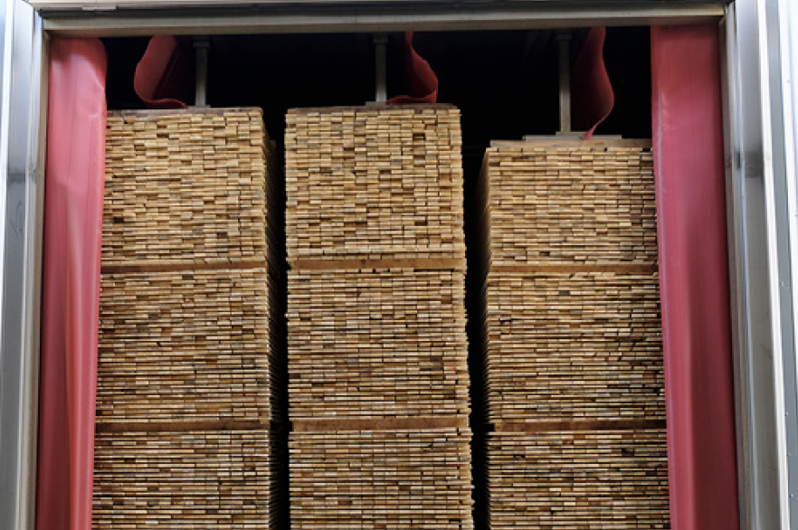 Pneumatische Niederhalter verhindern Verformungen des Schnittholzes während des Trocknens.